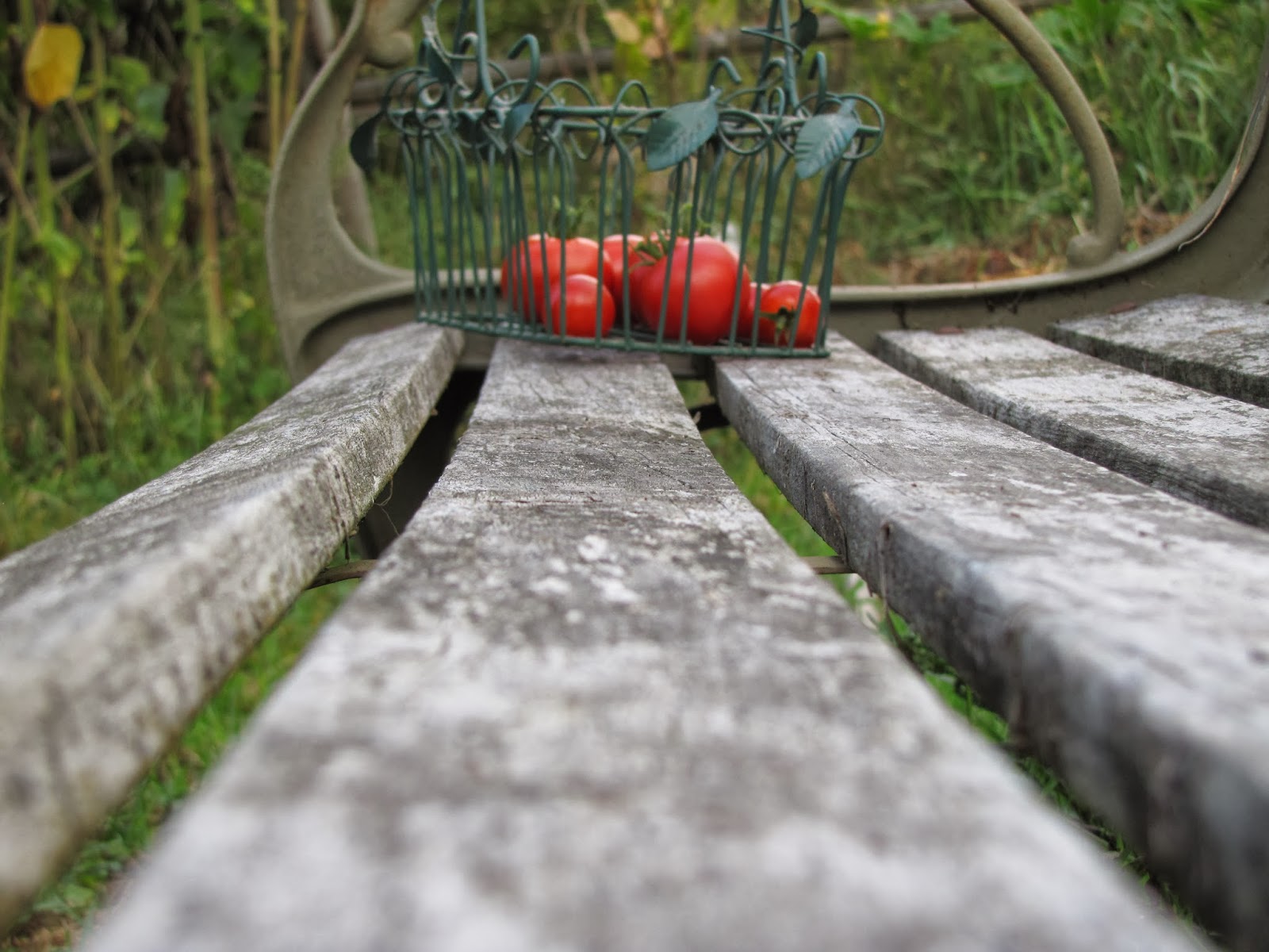 | Can you tell I loved this tomato-basket-and-bench combination? |